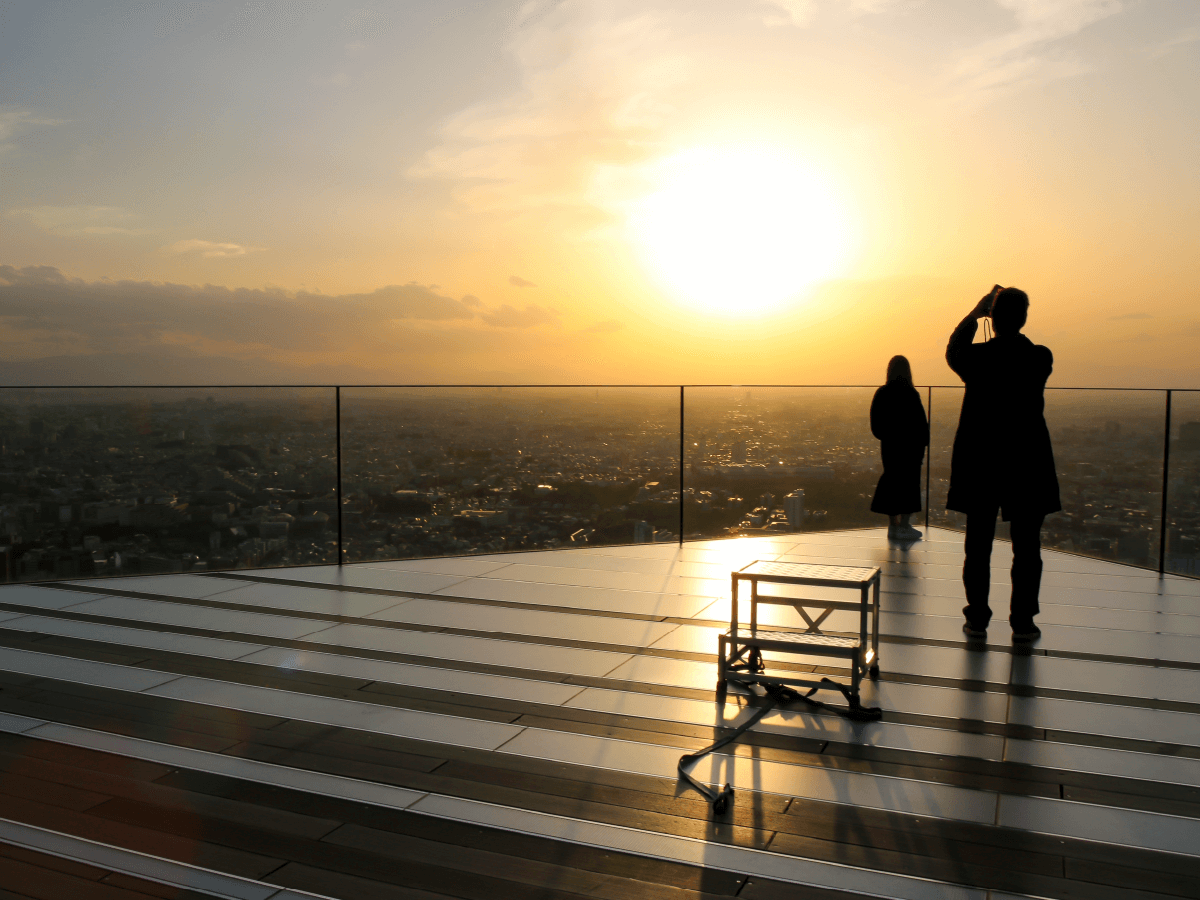 最新東京景點!360度透明觀景台,能看到晴空塔、東京塔,甚至富士山;下午4:30起可觀賞夕陽和夜景,還有休息區和飲食區。