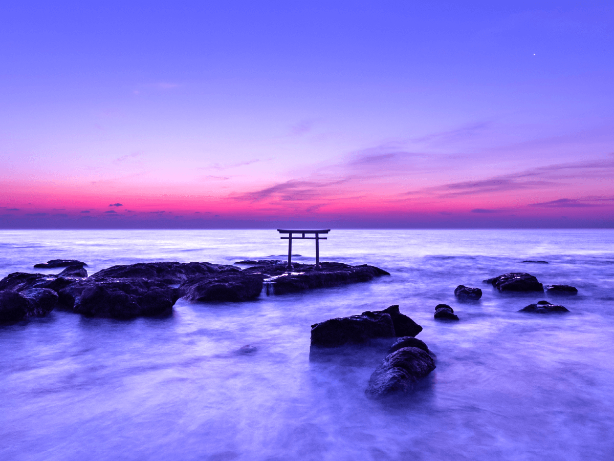其中一個「神磯鳥居」矗立於崎嶇的海岸線旁,形成神秘獨特的景象,別忘了帶御朱印或御守回家沾沾好運喔!