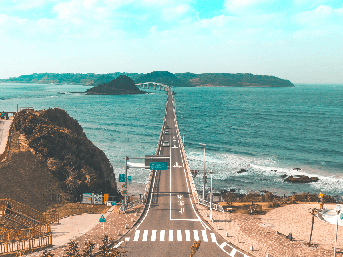 號稱「死前一定要去一次」的世界絕景!長達1,780公尺,連結本州與角島,白色橋身與湛藍海水相互輝映,令人難忘。