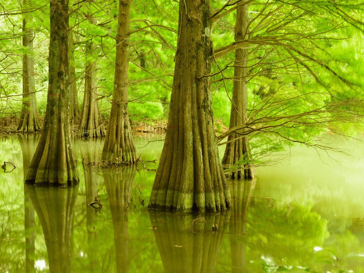因「水辺の森」成為福岡熱門IG打卡景點,水中巨大的落羽松,像極了宮崎駿動畫「魔法公主」內的場景,特別吸引人。