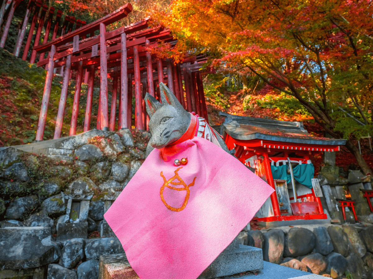 日本三大稻荷神社之一,坐落於山腳下,佔地相當遼闊,在滿山樹蔭的翠綠襯托之下,以朱紅塗漆裝飾,景緻獨特壯麗。