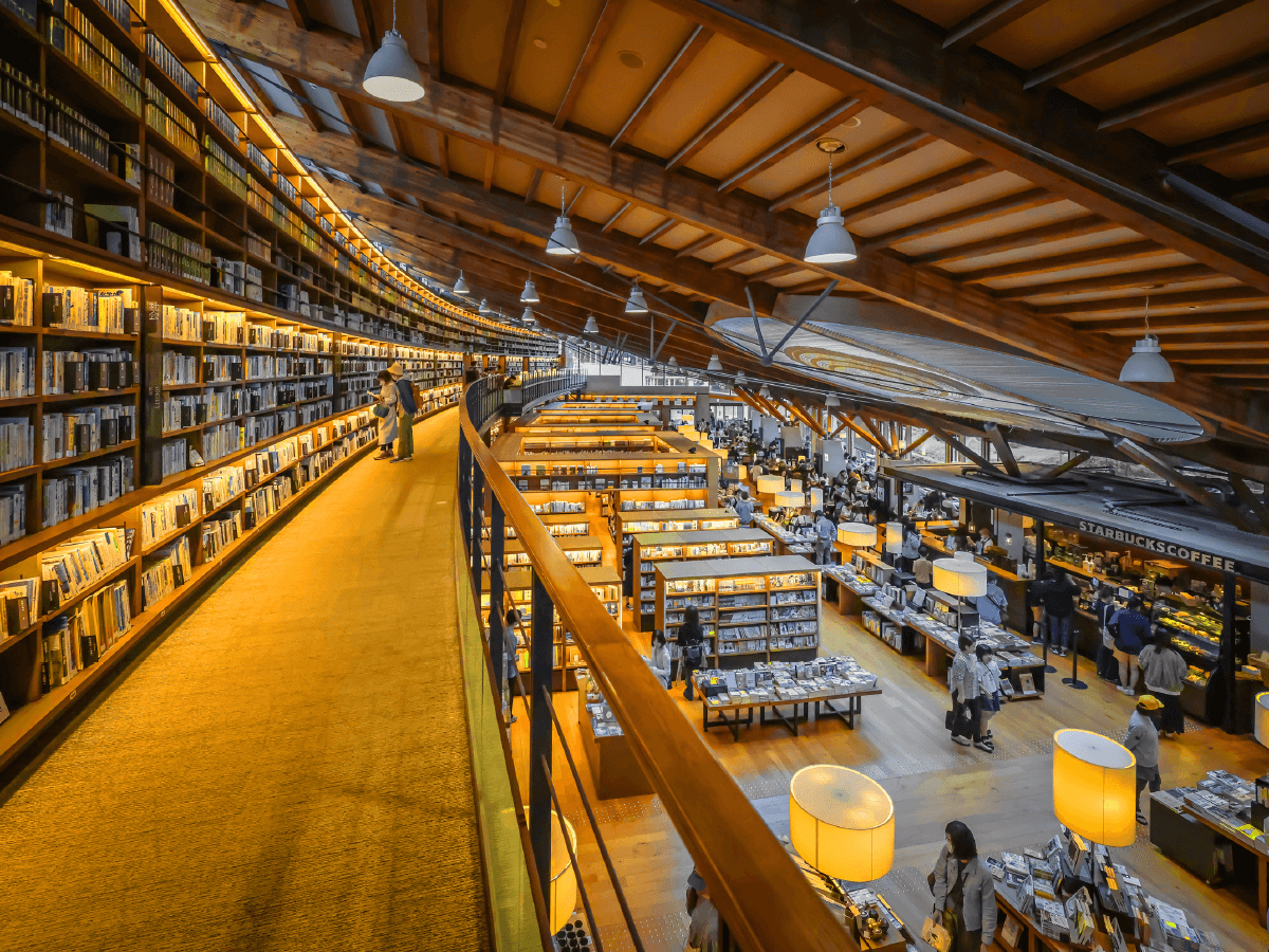 與蔦屋書店合作經營的圖書館,是日本最美的圖書館之一,建築本身的藝術感強,有多元藏書和星巴克,是創新圖書館。
