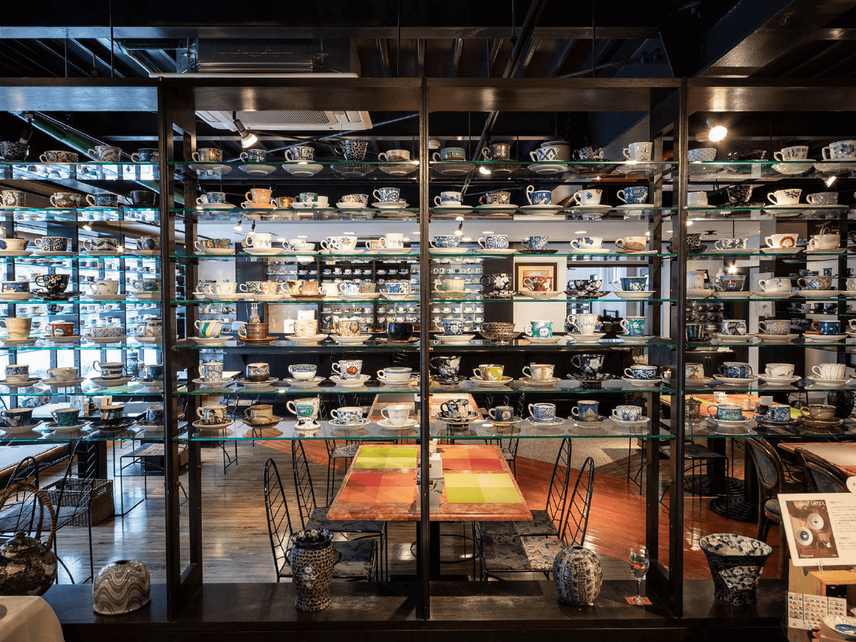 展示2,500組有田燒杯盤,其中不乏許多已經停產的稀有杯款!客人可選擇喜歡的咖啡杯用餐,成為熱門話題。